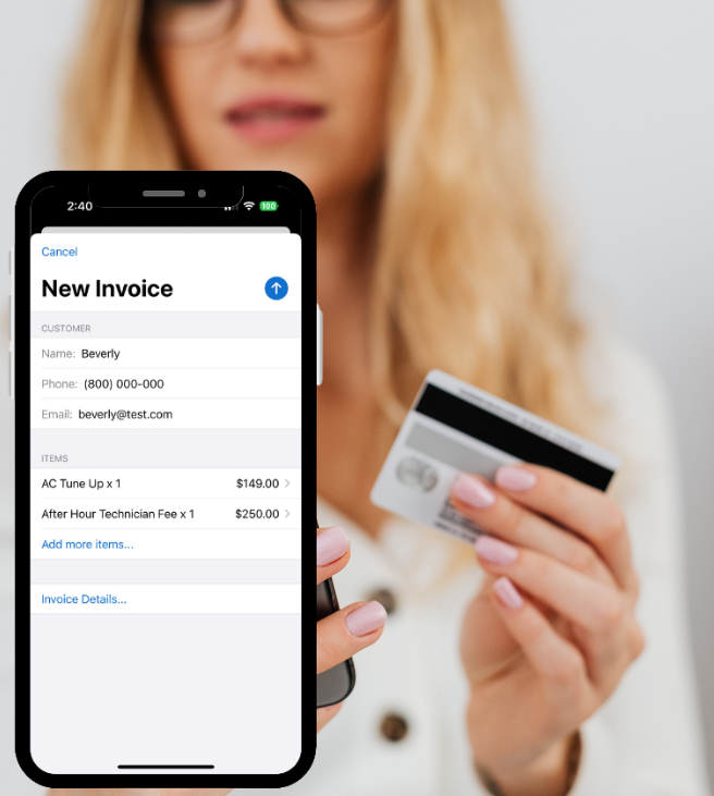 Send branded invoices or secure payment links by email or text, allowing customers to pay instantly from any device.